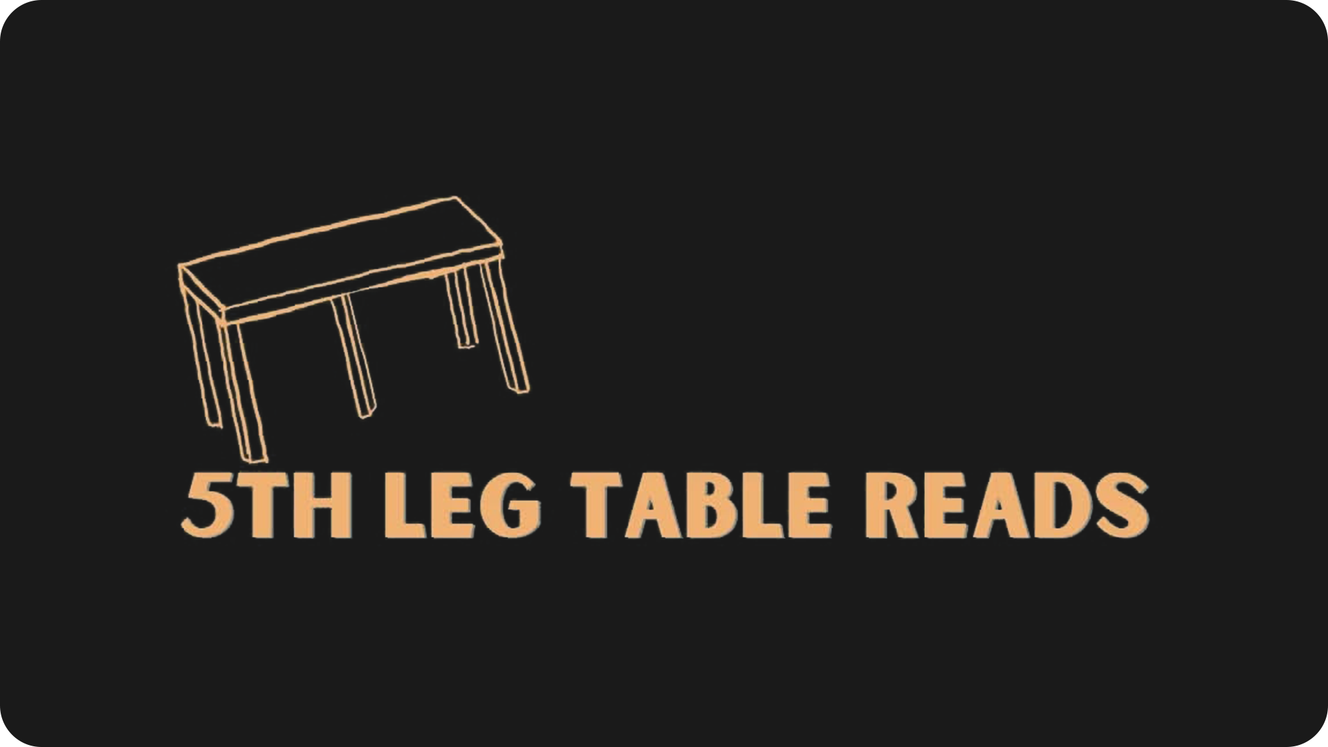 Writers and actors assemble! 5th Leg Table Reads is the virtual platform where you can bring your talents to a diverse and likeminded community. With affordable pricing (genuinely affordable!) and accessibility where ever you are, this is a fun and engaging way to share your talent, grow your skillsets, and network with fellow writers and actors.