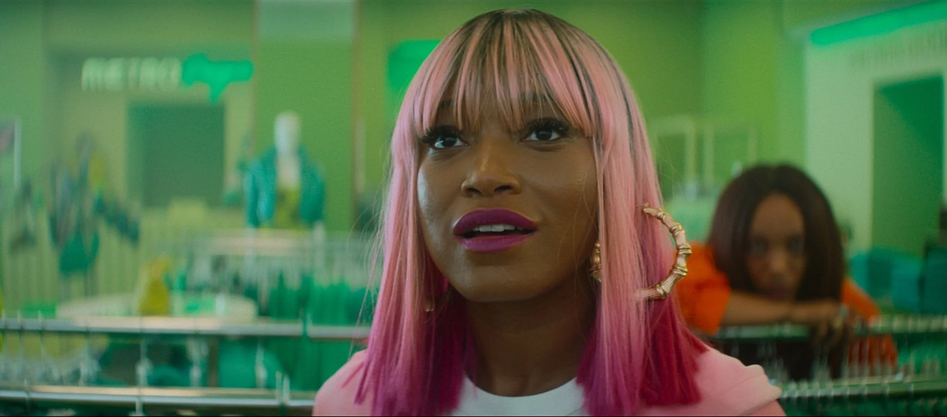If you're going into a Boots Riley film expecting apoliticism (the debut Coup album is literally called Kill Your Landlord), I suggest you take a hard look in the mirror. The son of civil rights activist Walter Riley, Boots has been an avid activist and political organizer since the age of fourteen; needless to say, solidarity's in Boots Riley’s bones. Sorry to Bother You shared similar themes of class warfare and workers’ rights—enough to make I Love Boosters feel like a companion piece—though the former is far more scattershot in terms of social commentary. I Love Boosters is a top-down takedown of capital through the lens of the fashion industry, dissecting the ladder (or, pyramid scheme) between CEO and sweatshop via our beloved Boosters.